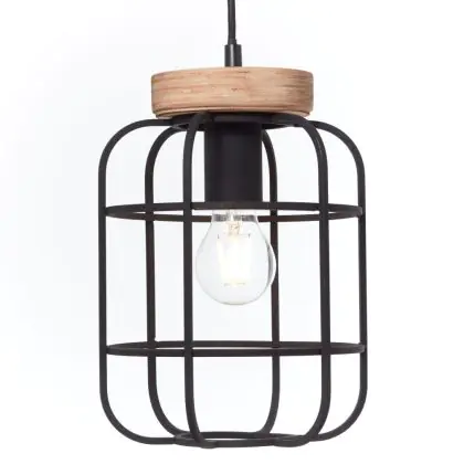 Brilliant Gwen Pendelleuchte Metall Holz Schwarz | Geeignet für 3x E27