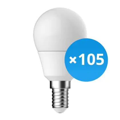 | Herstellername | Bulk 105x LED Lamp E14 Kogel 2.9W, 250lm, 2700K | Vervangt 25W | |