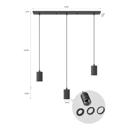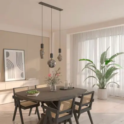 Calex Retro Pendelleuchte Cordset Rechteckig Metall Schwarz |incl. Kabel 2 Meter - Geeignet für 3xE27