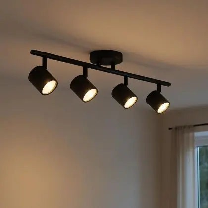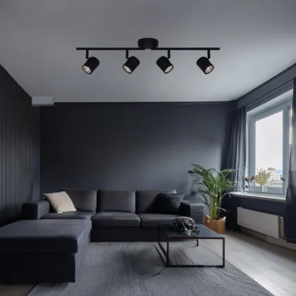 Die D'Lite Leuchte aus der Trop-Serie bietet ein hochwertiges Produkt zu einem erschwinglichen Preis. Die Trop 4 Deckenleuchte vereint Funktionalität mit einer modernen, stilvollen Optik. Sie ist für vier GU10-Leuchtmittel ausgelegt (nicht im Lieferumfang enthalten) und verfügt über ein sandfarbenes, schwarzes Metallgehäuse mit einer Länge von 68,5 cm. Diese Leuchte eignet sich ideal für die Gestaltung flexibler Beleuchtungskonzepte in Wohn- und Gastronomiebereichen.