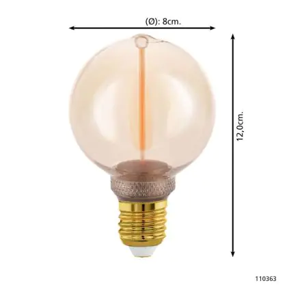 Eglo LED Globe E27 Fadenlampe Messing 2W 100lm - 818 | Dimmbar - Ersatz Für 15W