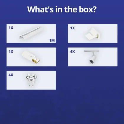 Komplettset 1-Phasen Rail 1 Meter Weiß | incl. 4x Spot + GU10 2700K 3W Dimmbar + Abschlusskappe, Stromanschluss