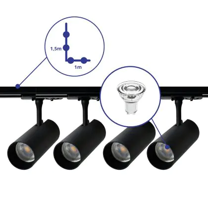 | Herstellername | Complete L shaped 1-Phase Track Set Black incl. 4x Spot fixture + GU10 2700K 3W Dim - 1 x 1,5 meter | |