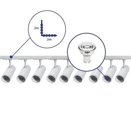 | Herstellername | Complete L shaped 1-Phase Track Set White incl. 9x Spot fixture + GU10 2700K 3W Dim – 2 x 2 meter i | |