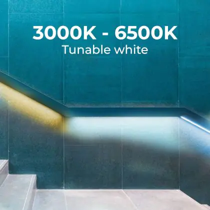 3. Abstimmbares Weiss: Das weisse Licht kann jeden Wert auf der aufgeführten Kelvin-Skala annehmen, z. B. 2.200 Kelvin bis 6.500 Kelvin.