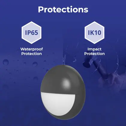 Die IK-Schutzklasse zeigt die Schlagfestigkeit einer Leuchte sowie den Schutz vor Vandalismus an. Sie wird in zwei Ziffern ausgedrückt (IK00 - IK10). Produkte mit IK00 sind somit nicht geschützt gegen Schläge oder Stöße jeglicher Art. Produkte mit IK10 bieten Schutz gegen Stöße von 20 Joule und sind gegen vandalismus-sicher.