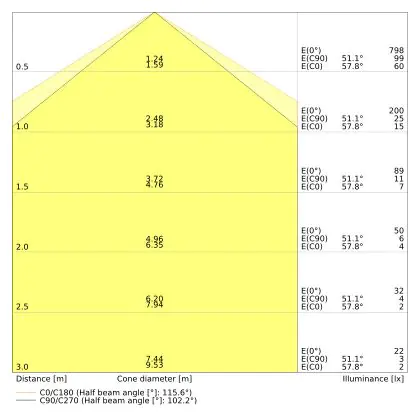 Die Farbwiedergabe wird über den Colour Rendering Index (CRI), auch Farbwiedergabeindex genannt, angegeben. Dieser verdeutlicht, wie das Licht der Lichtquelle Farben im Gegensatz zu natürlichem Tageslicht wiedergibt. Produkte mit einer guten (80-89 Ra) oder exzellenten (90-99 Ra) Farbwiedergabe weisen hierbei nur minimale Abweichungen im Farbspektrum auf. Diese sind mit dem bloßen Auge nicht zu erkennen.                                             | Farbwiedergabestufe (Ra) | 80-89 |