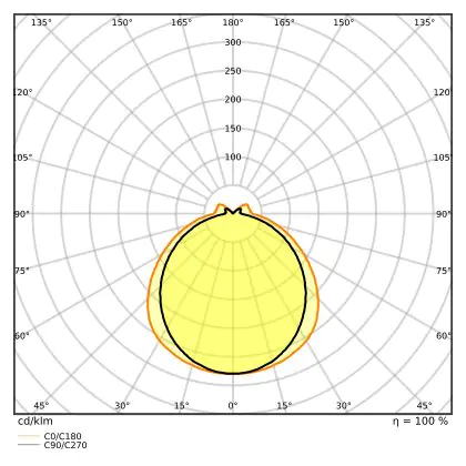 Der Wert Lumen (lm) gibt die Lichtleistung einer Lichtquelle an. Je höher die Lumenzahl, desto mehr Licht strahlt sie aus. Die Leistung (Watt) und die Anzahl an Lumen stehen nicht unbedingt in Zusammenhang: Eine LED strahlt zum Beispiel die gleiche Lichtleistung aus wie eine herkömmliche Lichtquelle, kommt aber mit bis zu 70 % weniger Watt daher.                                             | Lichtstrom (Lumen) | 900 |