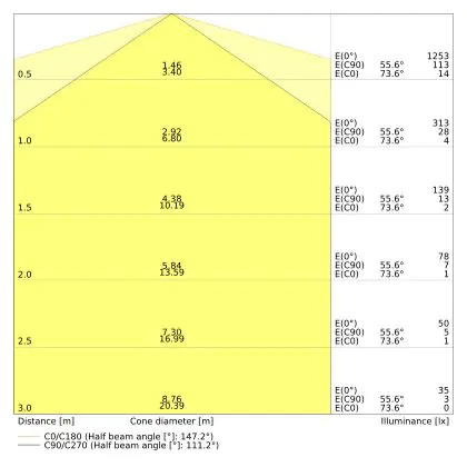 Die Farbwiedergabe wird über den Colour Rendering Index (CRI), auch Farbwiedergabeindex genannt, angegeben. Dieser verdeutlicht, wie das Licht der Lichtquelle Farben im Gegensatz zu natürlichem Tageslicht wiedergibt. Produkte mit einer guten (80-89 Ra) oder exzellenten (90-99 Ra) Farbwiedergabe weisen hierbei nur minimale Abweichungen im Farbspektrum auf. Diese sind mit dem bloßen Auge nicht zu erkennen.                                             | Farbwiedergabestufe (Ra) | 80-89 |