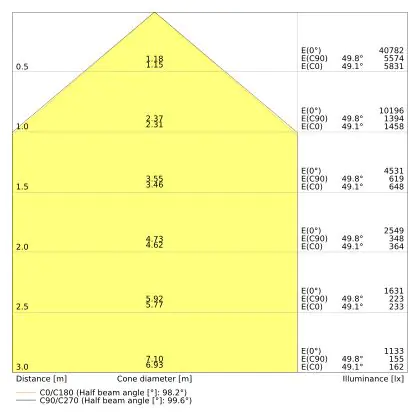 Der Wert Lumen (lm) gibt die Lichtleistung einer Lichtquelle an. Je höher die Lumenzahl, desto mehr Licht strahlt sie aus. Die Leistung (Watt) und die Anzahl an Lumen stehen nicht unbedingt in Zusammenhang: Eine LED strahlt zum Beispiel die gleiche Lichtleistung aus wie eine herkömmliche Lichtquelle, kommt aber mit bis zu 70 % weniger Watt daher.                                             | Lichtstrom (Lumen) | 25000 |