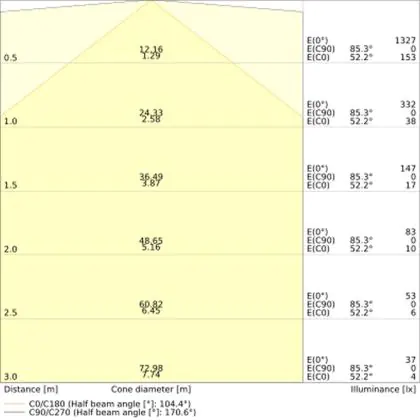 Die Farbwiedergabe wird über den Colour Rendering Index (CRI), auch Farbwiedergabeindex genannt, angegeben. Dieser verdeutlicht, wie das Licht der Lichtquelle Farben im Gegensatz zu natürlichem Tageslicht wiedergibt. Produkte mit einer guten (80-89 Ra) oder exzellenten (90-99 Ra) Farbwiedergabe weisen hierbei nur minimale Abweichungen im Farbspektrum auf. Diese sind mit dem bloßen Auge nicht zu erkennen.                                             | Farbwiedergabestufe (Ra) | 80-89 |