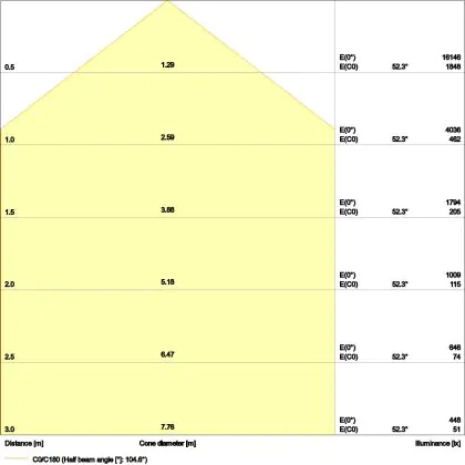 Der Abstrahlwinkel bezeichnet den Winkel, in dem das Licht aus der Lichtquelle ausgestrahlt wird. Er wird in Grad (D) angegeben. Je geringer die Gradzahl des Abstrahlwinkels ist, desto kleiner ist auch der Durchmesser des Lichtkegels, den die Lichtquelle produziert.