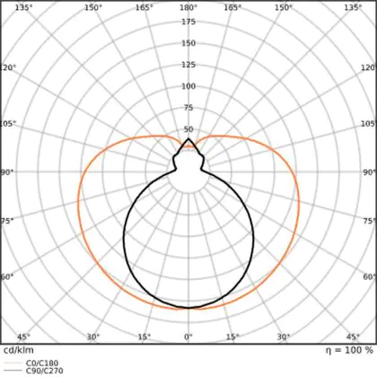 Das Lumen Watt Verhältnis (lm/W) (auch “Lumeneffizienz” genannt) zeigt, wie effizient ein Leuchtmittel Energie in Licht umwandelt. Hierfür wird der Lumenwert durch die Leistung (Watt) geteilt. Je höher die Zahl, desto effizienter nutzt das Produkt Energie. LED-Beleuchtung hat dabei eine wesentlich höhere Lumeneffizienz als herkömmliche Leuchtmittel.                                             | Lumen Watt Verhältnis (Lm/W) | 108 |