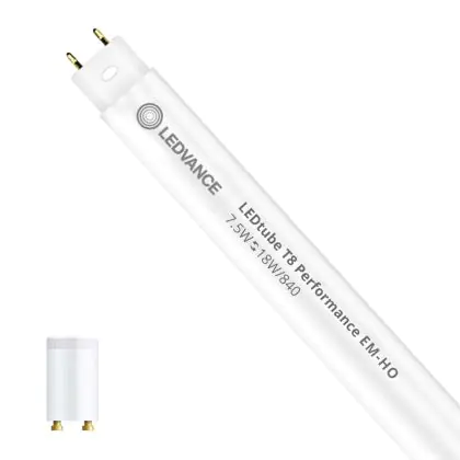 Bei der Ledvance LED Röhre T8 Performance (EM/Mains) High Output 7.5W 1100lm - 840 | 60cm - Dimmbar - Ersatz Für 18W handelt es sich um eine energieeffiziente LED-Röhre. Sie ersetzt Ihre konventionelle Leuchtstoffröhre mit 18W. Die Röhre ist 603 mm lang und hat die Farbtemperatur 4000K - Kaltweiss. Die durchschnittliche Lebensdauer der LED-Röhre beläuft sich auf 50000 Stunden. Wir bieten Ihnen für dieses Produkt eine Garantie von 5 Jahre an.