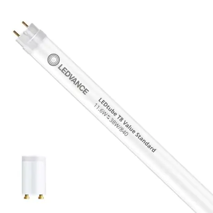 Bei der Ledvance LED Röhre T8 Value (EM/Mains) Standard Output 11.6W 1400lm - 840 | 105cm - Ersatz für 38W handelt es sich um eine energieeffiziente LED-Röhre. Sie ersetzt Ihre konventionelle Leuchtstoffröhre mit 38W. Die Röhre ist 1061 mm lang und hat die Farbtemperatur 4000K - Kaltweiss. Die durchschnittliche Lebensdauer der LED-Röhre beläuft sich auf 30000 Stunden. Wir bieten Ihnen für dieses Produkt eine Garantie von 5 Jahre an.