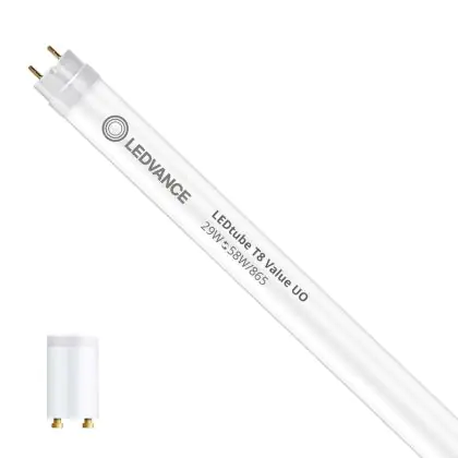 Bei der Ledvance LED Röhre T8 Value (EM/Mains) Ultra Output 29W 3500lm - 865 | 150cm - Ersatz für 58W handelt es sich um eine energieeffiziente LED-Röhre. Sie ersetzt Ihre konventionelle Leuchtstoffröhre mit 58W. Die Röhre ist 1514 mm lang und hat die Farbtemperatur 6500K - Tageslichtweiss. Die durchschnittliche Lebensdauer der LED-Röhre beläuft sich auf 30000 Stunden. Wir bieten Ihnen für dieses Produkt eine Garantie von 5 Jahre an.