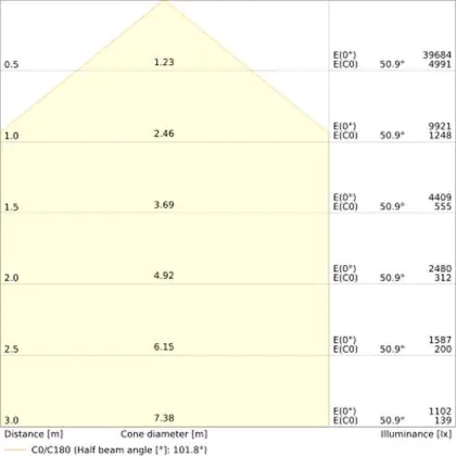 Der Abstrahlwinkel bezeichnet den Winkel, in dem das Licht aus der Lichtquelle ausgestrahlt wird. Er wird in Grad (D) angegeben. Je geringer die Gradzahl des Abstrahlwinkels ist, desto kleiner ist auch der Durchmesser des Lichtkegels, den die Lichtquelle produziert.