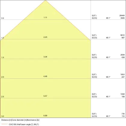 Der Abstrahlwinkel bezeichnet den Winkel, in dem das Licht aus der Lichtquelle ausgestrahlt wird. Er wird in Grad (D) angegeben. Je geringer die Gradzahl des Abstrahlwinkels ist, desto kleiner ist auch der Durchmesser des Lichtkegels, den die Lichtquelle produziert.