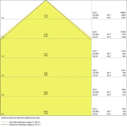 Der Abstrahlwinkel bezeichnet den Winkel, in dem das Licht aus der Lichtquelle ausgestrahlt wird. Er wird in Grad (D) angegeben. Je geringer die Gradzahl des Abstrahlwinkels ist, desto kleiner ist auch der Durchmesser des Lichtkegels, den die Lichtquelle produziert.