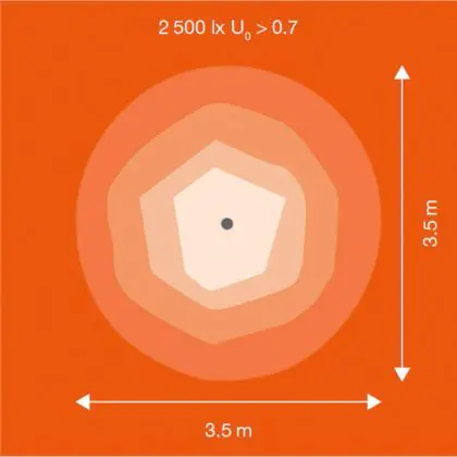 Der Abstrahlwinkel bezeichnet den Winkel, in dem das Licht aus der Lichtquelle ausgestrahlt wird. Er wird in Grad (D) angegeben. Je geringer die Gradzahl des Abstrahlwinkels ist, desto kleiner ist auch der Durchmesser des Lichtkegels, den die Lichtquelle produziert.