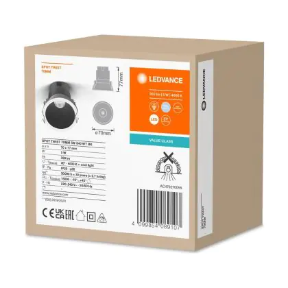 | Herstellername | LED SPOT RECESS TWIST PRO 70mm 5W 4000K White Black | |