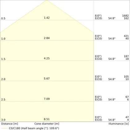 Die Farbwiedergabe wird über den Colour Rendering Index (CRI), auch Farbwiedergabeindex genannt, angegeben. Dieser verdeutlicht, wie das Licht der Lichtquelle Farben im Gegensatz zu natürlichem Tageslicht wiedergibt. Produkte mit einer guten (80-89 Ra) oder exzellenten (90-99 Ra) Farbwiedergabe weisen hierbei nur minimale Abweichungen im Farbspektrum auf. Diese sind mit dem bloßen Auge nicht zu erkennen.                                             | Farbwiedergabestufe (Ra) | 80-89 |