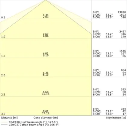 Der Wert Lumen (lm) gibt die Lichtleistung einer Lichtquelle an. Je höher die Lumenzahl, desto mehr Licht strahlt sie aus. Die Leistung (Watt) und die Anzahl an Lumen stehen nicht unbedingt in Zusammenhang: Eine LED strahlt zum Beispiel die gleiche Lichtleistung aus wie eine herkömmliche Lichtquelle, kommt aber mit bis zu 70 % weniger Watt daher.                                             | Lichtstrom (Lumen) | 11680 |