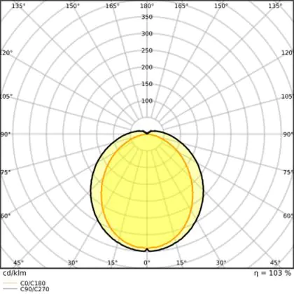 Das Lumen Watt Verhältnis (lm/W) (auch “Lumeneffizienz” genannt) zeigt, wie effizient ein Leuchtmittel Energie in Licht umwandelt. Hierfür wird der Lumenwert durch die Leistung (Watt) geteilt. Je höher die Zahl, desto effizienter nutzt das Produkt Energie. LED-Beleuchtung hat dabei eine wesentlich höhere Lumeneffizienz als herkömmliche Leuchtmittel.                                             | Lumen Watt Verhältnis (Lm/W) | 110 |