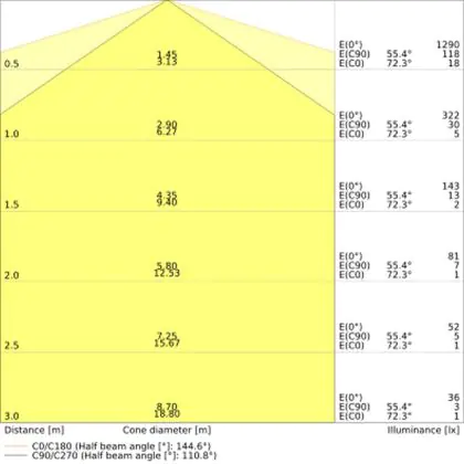 Das Lumen Watt Verhältnis (lm/W) (auch “Lumeneffizienz” genannt) zeigt, wie effizient ein Leuchtmittel Energie in Licht umwandelt. Hierfür wird der Lumenwert durch die Leistung (Watt) geteilt. Je höher die Zahl, desto effizienter nutzt das Produkt Energie. LED-Beleuchtung hat dabei eine wesentlich höhere Lumeneffizienz als herkömmliche Leuchtmittel.                                             | Lumen Watt Verhältnis (Lm/W) | 125 |