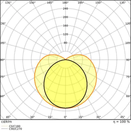 Das Lumen Watt Verhältnis (lm/W) (auch “Lumeneffizienz” genannt) zeigt, wie effizient ein Leuchtmittel Energie in Licht umwandelt. Hierfür wird der Lumenwert durch die Leistung (Watt) geteilt. Je höher die Zahl, desto effizienter nutzt das Produkt Energie. LED-Beleuchtung hat dabei eine wesentlich höhere Lumeneffizienz als herkömmliche Leuchtmittel.                                             | Lumen Watt Verhältnis (Lm/W) | 135 |