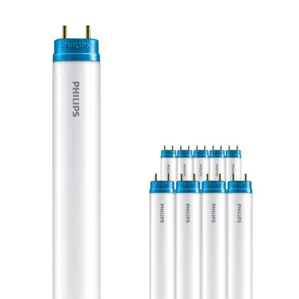 Bei der Mehrfachpackung 10x Philips LED Röhre T8 CorePro (EM/Mains) Standard Output 20W 2200lm - 840 Kaltweiß | 150cm - Ersatz Für 58W handelt es sich um eine energieeffiziente LED-Röhre. Sie ersetzt Ihre konventionelle Leuchtstoffröhre mit 58W. Die Röhre ist 1500 mm lang und hat die Farbtemperatur 4000K - Kaltweiss. Die durchschnittliche Lebensdauer der LED-Röhre beläuft sich auf 30000 Stunden. Wir bieten Ihnen für dieses Produkt eine Garantie von 3 Jahre an.