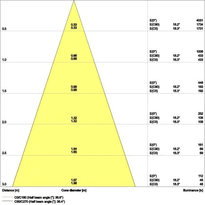 Der Abstrahlwinkel bezeichnet den Winkel, in dem das Licht aus der Lichtquelle ausgestrahlt wird. Er wird in Grad (D) angegeben. Je geringer die Gradzahl des Abstrahlwinkels ist, desto kleiner ist auch der Durchmesser des Lichtkegels, den die Lichtquelle produziert.