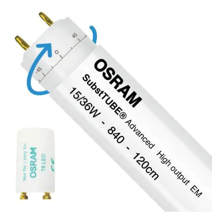 Bei der Osram LED Röhre 120cm | 4000K 15W - Advanced UO handelt es sich um eine energieeffiziente LED-Röhre. Sie ersetzt Ihre konventionelle Leuchtstoffröhre mit 36W. Die Röhre ist 1200 mm lang und hat die Farbtemperatur 4000K - Kaltweiss. Die durchschnittliche Lebensdauer der LED-Röhre beläuft sich auf 60000 Stunden. Wir bieten Ihnen für dieses Produkt eine Garantie von 5 Jahre an.