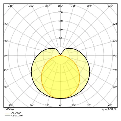 Das Lumen Watt Verhältnis (lm/W) (auch “Lumeneffizienz” genannt) zeigt, wie effizient ein Leuchtmittel Energie in Licht umwandelt. Hierfür wird der Lumenwert durch die Leistung (Watt) geteilt. Je höher die Zahl, desto effizienter nutzt das Produkt Energie. LED-Beleuchtung hat dabei eine wesentlich höhere Lumeneffizienz als herkömmliche Leuchtmittel.                                             | Lumen Watt Verhältnis (Lm/W) | 128.6 |