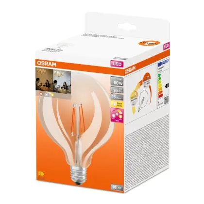 Osram SuperStar LED E27 Globe 125mm Fadenlampe Klar 7W 806lm - 822-827 Dim to Warm | Dimmbar - Ersatz für 60W