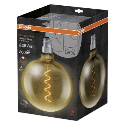 Osram Vintage 1906 LED E27 Globe Fadenlampe Gold 200mm 5W 300lm - 820 | Dimmbar - Ersatz für 40W