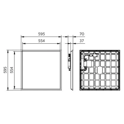 Die Maße der meisten LED-Panels sind entweder 60x60 cm, 62x62 cm (quadratisch) oder 30x120 cm (rechteckig). Das sind die Standardgrößen von Rasterdecken. Wir bieten Ihnen aber auch verschiedene andere Größen, wie zum Beispiel 20x120 cm oder 15x150 cm an.                                             | Grösse des LED Panels | 60x60cm |