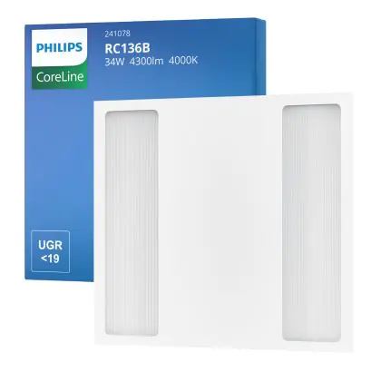 Philips LED Panel CoreLine RC136B 25/34W 3100-4300lm - 840 | 60x60cm - UGR <19 - Dali Dimmbar - Wählbare Wattzahl - 3 Stunden Notbeleuchtung