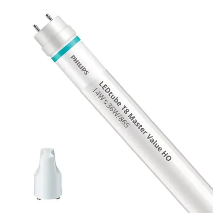 Bei der Philips LED Röhre 120cm | 6500K 14W - Master Value HO handelt es sich um eine energieeffiziente LED-Röhre. Sie ersetzt Ihre konventionelle Leuchtstoffröhre mit 36W. Die Röhre ist 1200 mm lang und hat die Farbtemperatur 6500K - Tageslichtweiss. Die durchschnittliche Lebensdauer der LED-Röhre beläuft sich auf 60000 Stunden. Wir bieten Ihnen für dieses Produkt eine Garantie von 5 Jahre an.