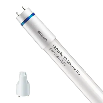 Bei der Philips LED Röhre 60cm | 6500K 8W - Master HO handelt es sich um eine energieeffiziente LED-Röhre. Sie ersetzt Ihre konventionelle Leuchtstoffröhre mit 18W. Die Röhre ist 600 mm lang und hat die Farbtemperatur 6500K - Tageslichtweiss. Die durchschnittliche Lebensdauer der LED-Röhre beläuft sich auf 60000 Stunden. Wir bieten Ihnen für dieses Produkt eine Garantie von 5 Jahre an.