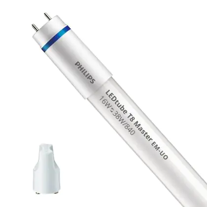 Bei der Philips LED Tube T8 MASTER (EM/Mains) Ultra Output 16W 2500lm - 840 Kaltweiß | 105cm - Dimmbar - Ersatz für 38W handelt es sich um eine energieeffiziente LED-Röhre. Sie ersetzt Ihre konventionelle Leuchtstoffröhre mit 38W. Die Röhre ist 1061 mm lang und hat die Farbtemperatur 4000K - Kaltweiss. Die durchschnittliche Lebensdauer der LED-Röhre beläuft sich auf 75000 Stunden. Wir bieten Ihnen für dieses Produkt eine Garantie von 5 Jahre an.