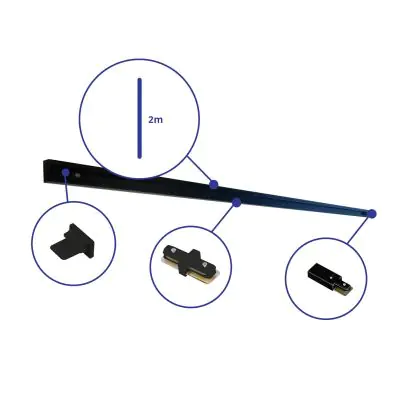 Rail Set 1-Phasen 2 Meter Schwarz | incl. Abschlusskappe, Stromanschluss und I-Verbinder