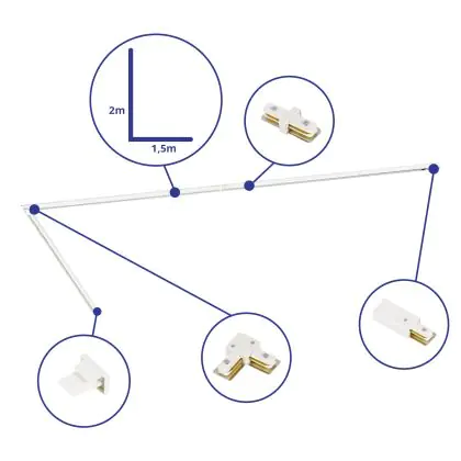 | Herstellername | Complete L shaped 1-Phase Track Set White – 1,5 x 2 meter incl. End Cap, Power Connector and L -Con | |