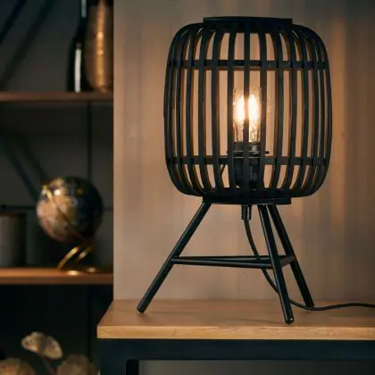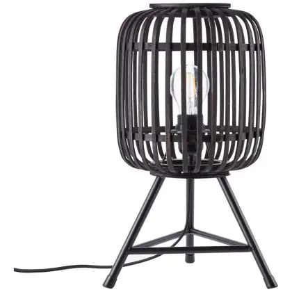 Brilliant Boisrow Lampe De Table Métal Bambou Noir Bois | Convient pour 1x E27