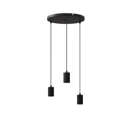 Calex Retro Suspension Luminaire Cordset Ronde Métal Noir |incl. câble 2 Mètre - Convient pour 3xE27