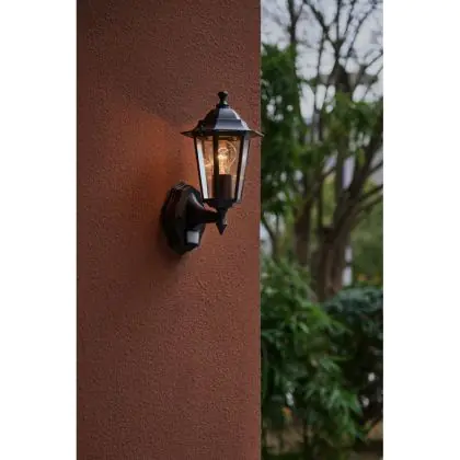 D'Lite Applique Murale Helora Noir | IP44 - Convient pour 1x E27 - Détecteur De Mouvement