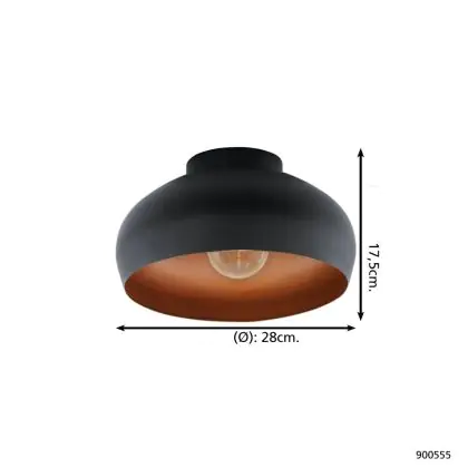 Eglo Plafonnier Mogano 2 Noir, Cuivre | Convient pour E27