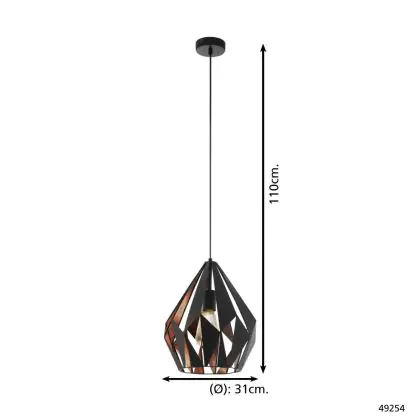 Eglo Suspension Luminaire Carlton 1 Noir, Cuivre | Convient pour E27