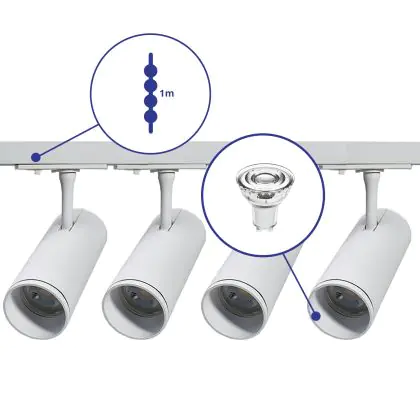 Le Ensemble complet Rail Monophasé Rail 1 Mètre Blanc | incl. 4x Spot + GU10 2700K 3W Dimmable + Embout, Connecteur d’Alimentation est luminaire d’accentuation. Plus précisément, il s’agit d’un spot LED sur rail triphasé. Ce spot Sans marque utilise la technologie LED Intégré lui permettant d’avoir une durée de vie beaucoup plus longue ( heures) qu’un luminaire classique. De plus, avec la technologie LED vous réaliserez des économies d’énergie importantes et donc des économies de coûts. Ce spot LED dispose d’un excellent indice de rendu des couleurs comprit entre Ra et propose une couleur de lumière de . Ce type d’éclairage est apprécié dans les restaurants, boutiques et les autres différents commerces.