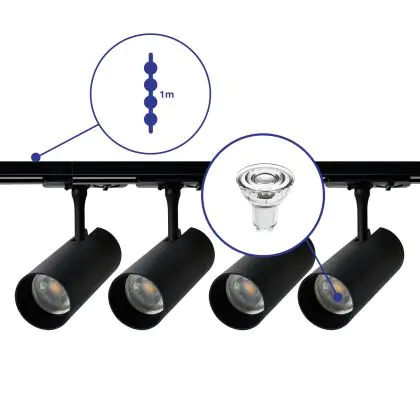 Le Ensemble complet Rail Monophasé Rail 1 Mètre Noir | incl. 4x Spot + GU10 2700K 3W Dimmable + Embout, Connecteur d’Alimentation est luminaire d’accentuation. Plus précisément, il s’agit d’un spot LED sur rail triphasé. Ce spot Sans marque utilise la technologie LED Intégré lui permettant d’avoir une durée de vie beaucoup plus longue ( heures) qu’un luminaire classique. De plus, avec la technologie LED vous réaliserez des économies d’énergie importantes et donc des économies de coûts. Ce spot LED dispose d’un excellent indice de rendu des couleurs comprit entre Ra et propose une couleur de lumière de . Ce type d’éclairage est apprécié dans les restaurants, boutiques et les autres différents commerces.